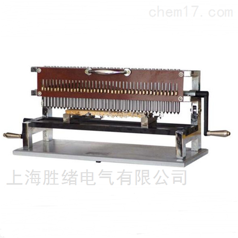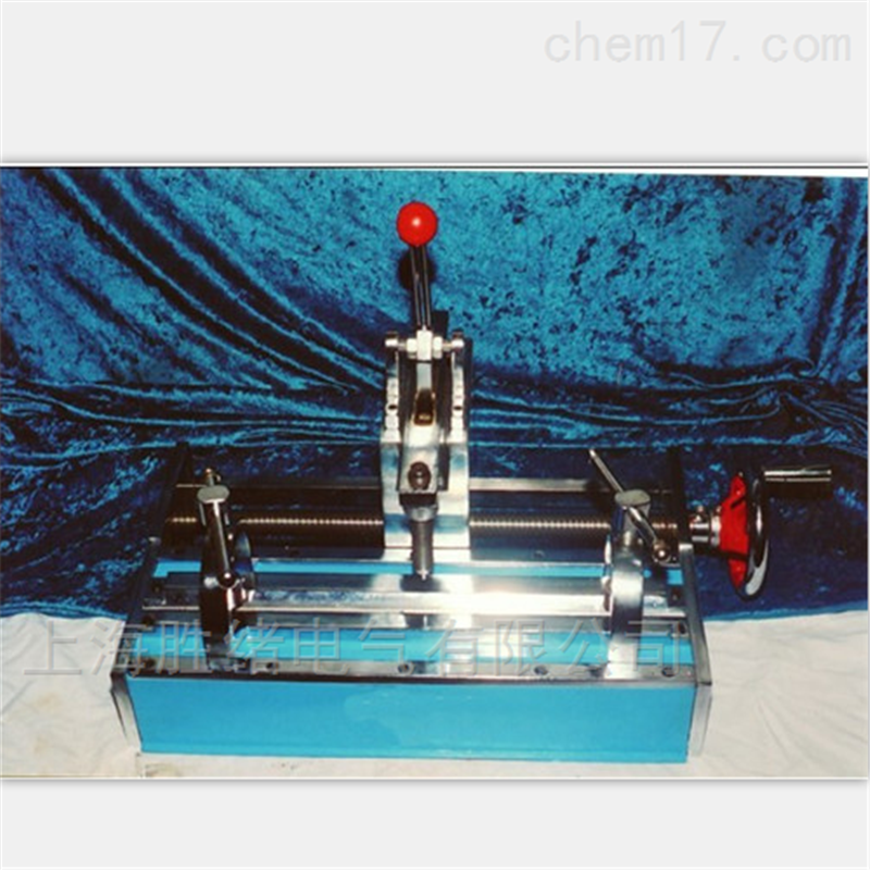 3.左手按压上部弯曲手柄的弯曲部位,使试样压紧,然后右手摇动右端手柄一周,即可打出标距点;